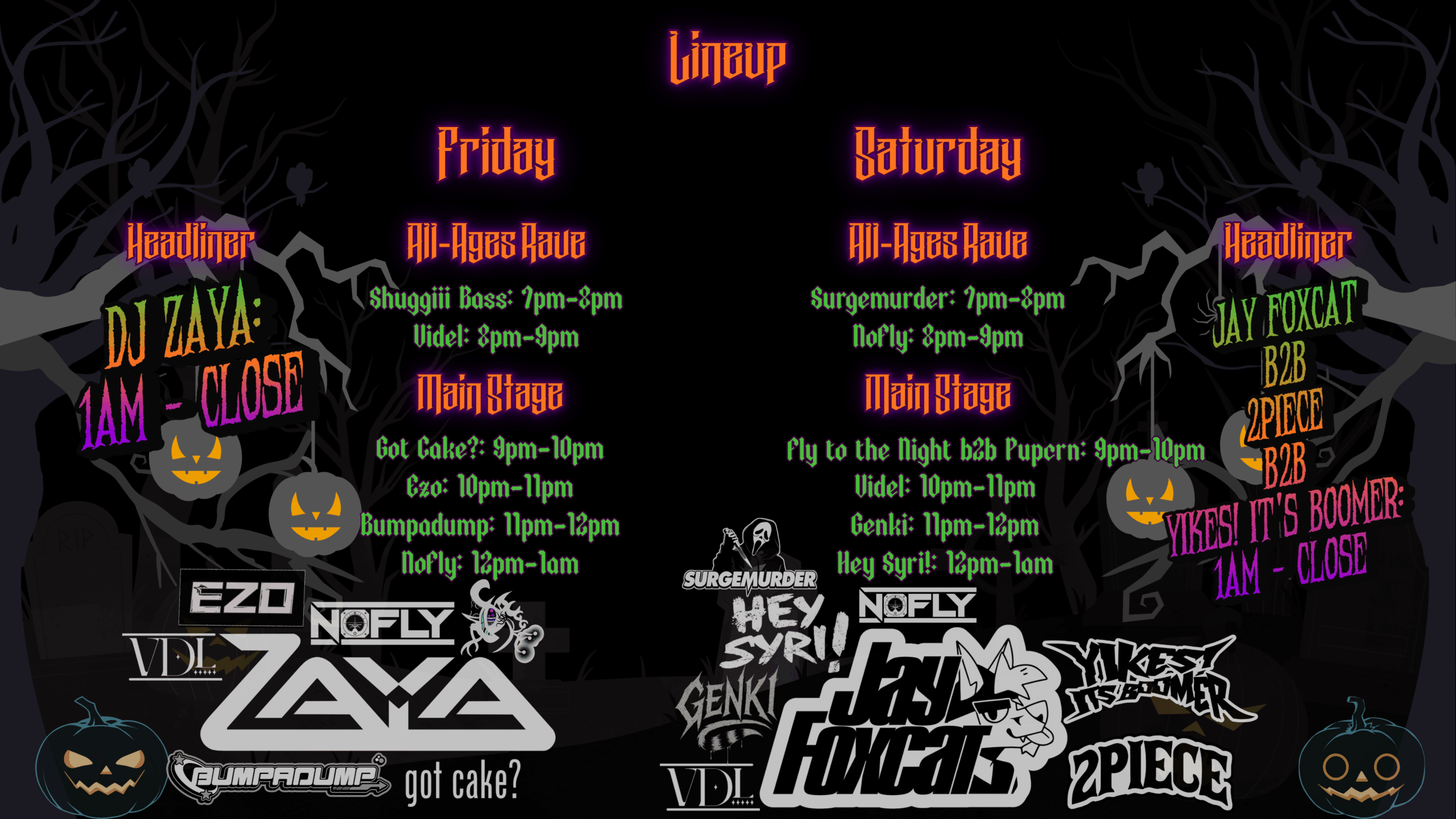 The 2025 Raveyard Dance will feature an incredible collection of artists from both the Local EDM scene and the Furry community. We will be hosting two nights of Raves, running Friday October 10th and Saturday October 11th from 9pm to 2am each night.